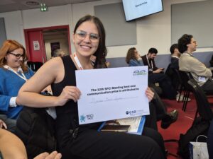 Mariana a obtenu le prix de la meilleure présentation orale aux 12èmes journées de la Société Française de Chémoinformatique (SFCi) qui avaient lieu en décembre 2025. Félicitations à elle et son équipe encadrante !